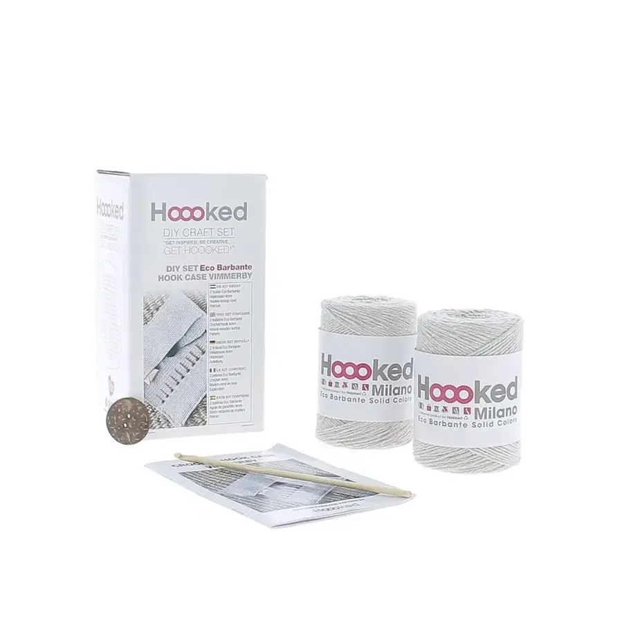 Need to a storage solution for your crochet hooks and haberdasheries? This crochet case is a must-have for everyone who loves to crochet! This soft crochet case is perfect to store your crochet hooks and accessories such as stitch markers and scissors. The portable crochet case can be folded up for easy transportation. Perfect for crochet projects on-the-go. The crochet pattern for this crochet hook case is especially designed for Hoooked by Handmadejolie.The crochet case is divided by smaller compartments to store your hooks. You can arrange, customize and adjust these compartments to your own preference. This way your precious crochet belongings will be protected and well organized. This kit contains: 2 x 200 g Eco Barbante Biscuit Crochet hook 4 mm (US G/6) 1 x Coconut Button Round 3 cm Pattern