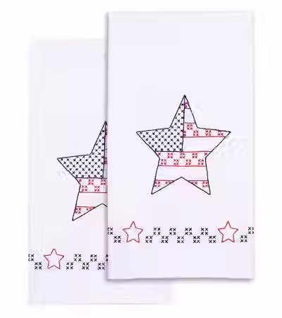 Each package contains a pair of 17in x 28in decorative hand towels, and embroidery design guide. Made of poly/cotton broadcloth. Additional materials needed to complete: Hoop, needle, and floss.